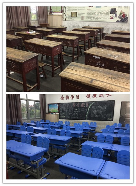 图为教室更换课桌椅前后对比